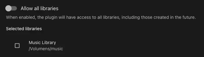 - Specific libraries: Select which libraries the plugin can access