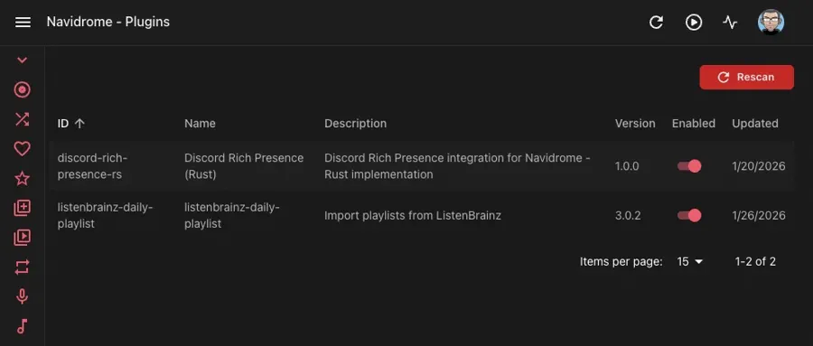 Once plugins are installed, you manage them through the Navidrome web interface: