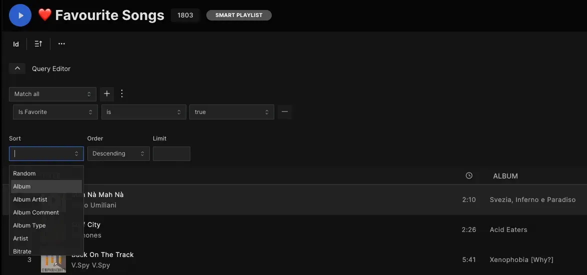 Smart Playlists are currently in beta and may have some limitations. Please report any issues or suggestions to the Navidrome GitHub issues page.Creating Smart Playlists