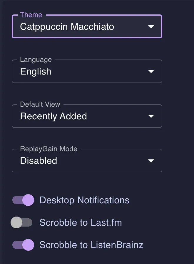 - Scrobblers: Send your listening history to external services beyond the built-in Last.fm and ListenBrainz support