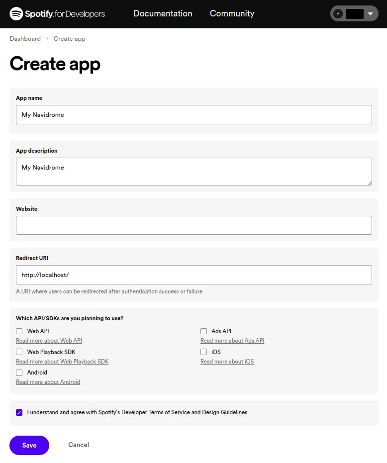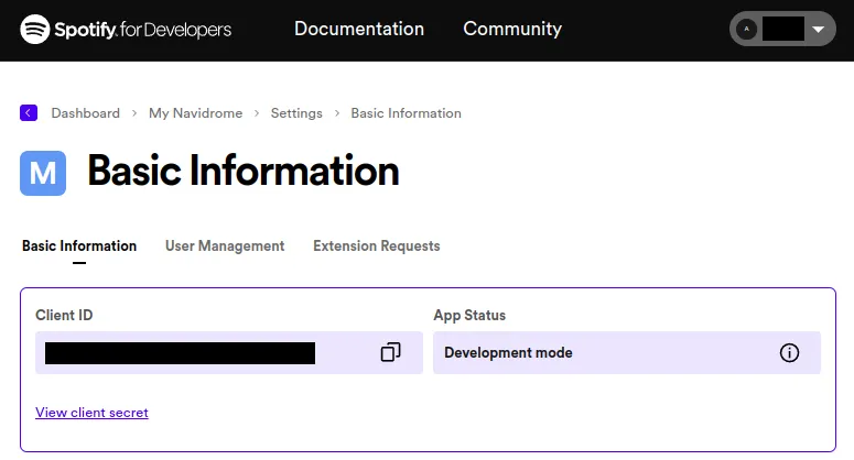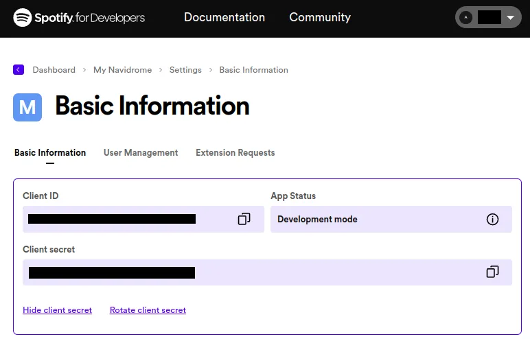 1. Copy the values of ID and secret to your configuration file as Spotify.ID and Spotify.Secret (or set them as environment variables ND_SPOTIFY_ID and ND_SPOTIFY_SECRET):
