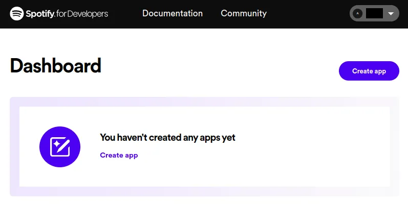 1. Click on the “Create app” button in Spotify’s Developer dashboard: https://developer.spotify.com/dashboard/applications: